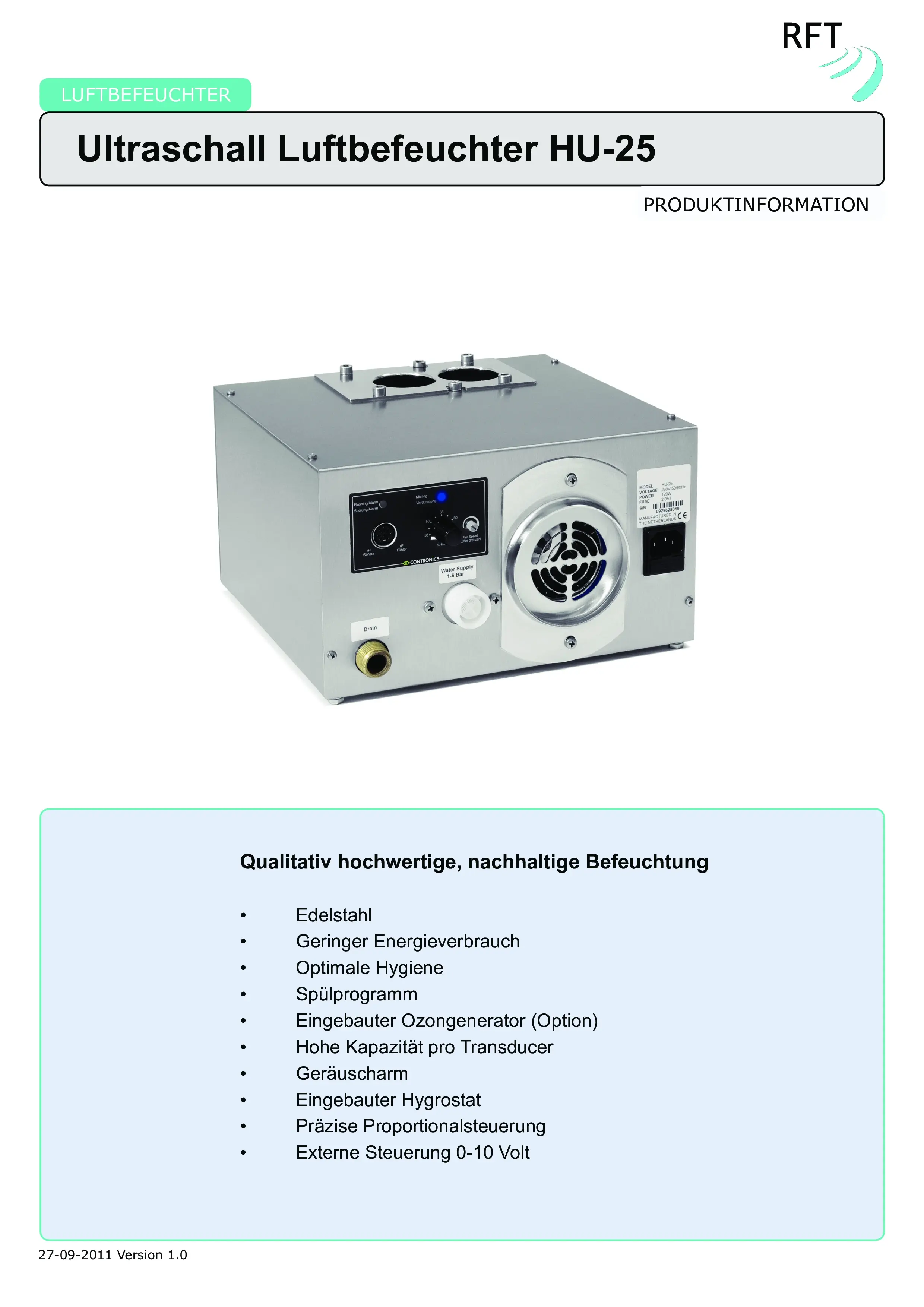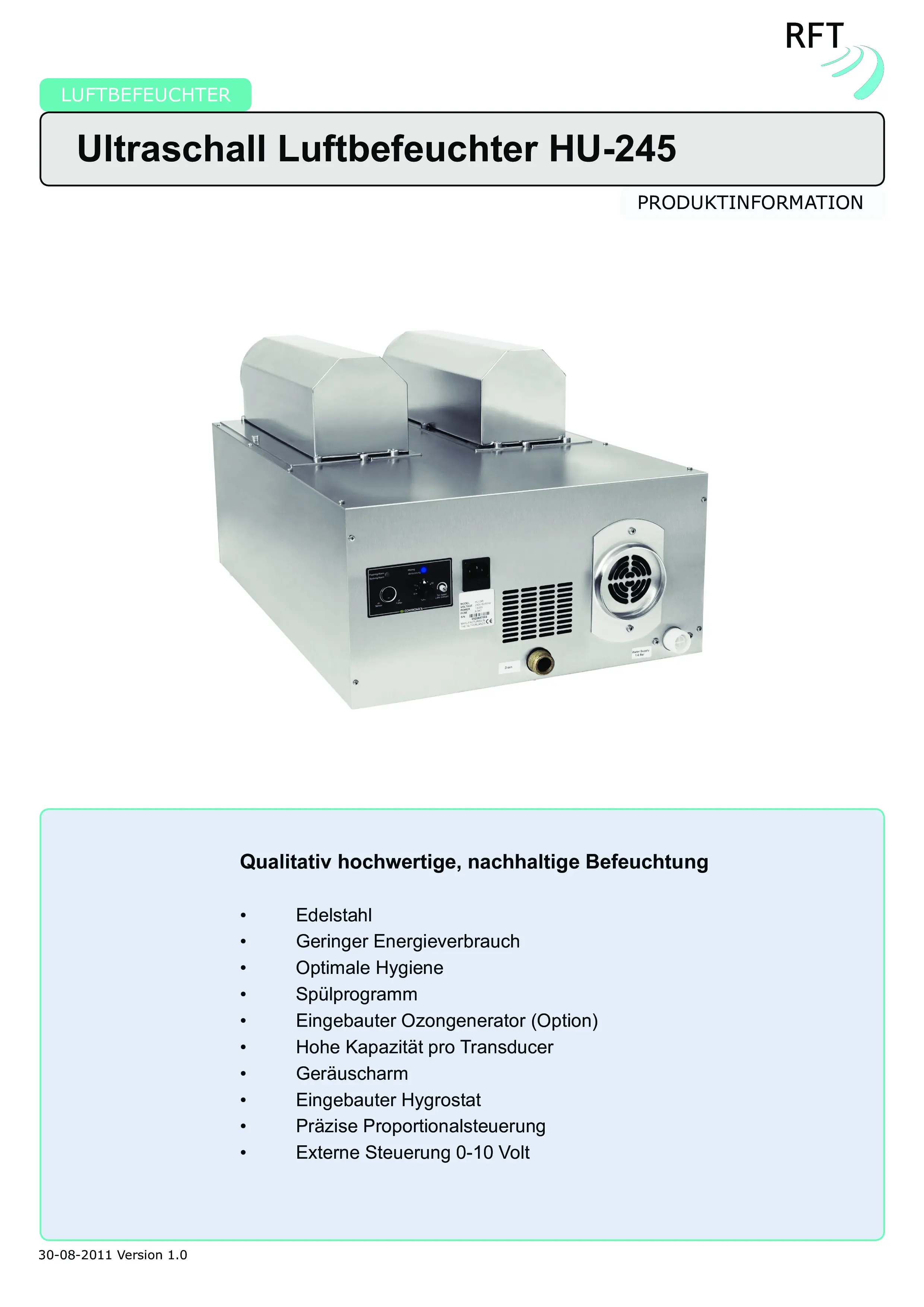 Der HU-245 RFT Ultraschall-Luftbefeuchter ist eine leistungsstarke Maschine für Auslagenbis zu 18m Länge