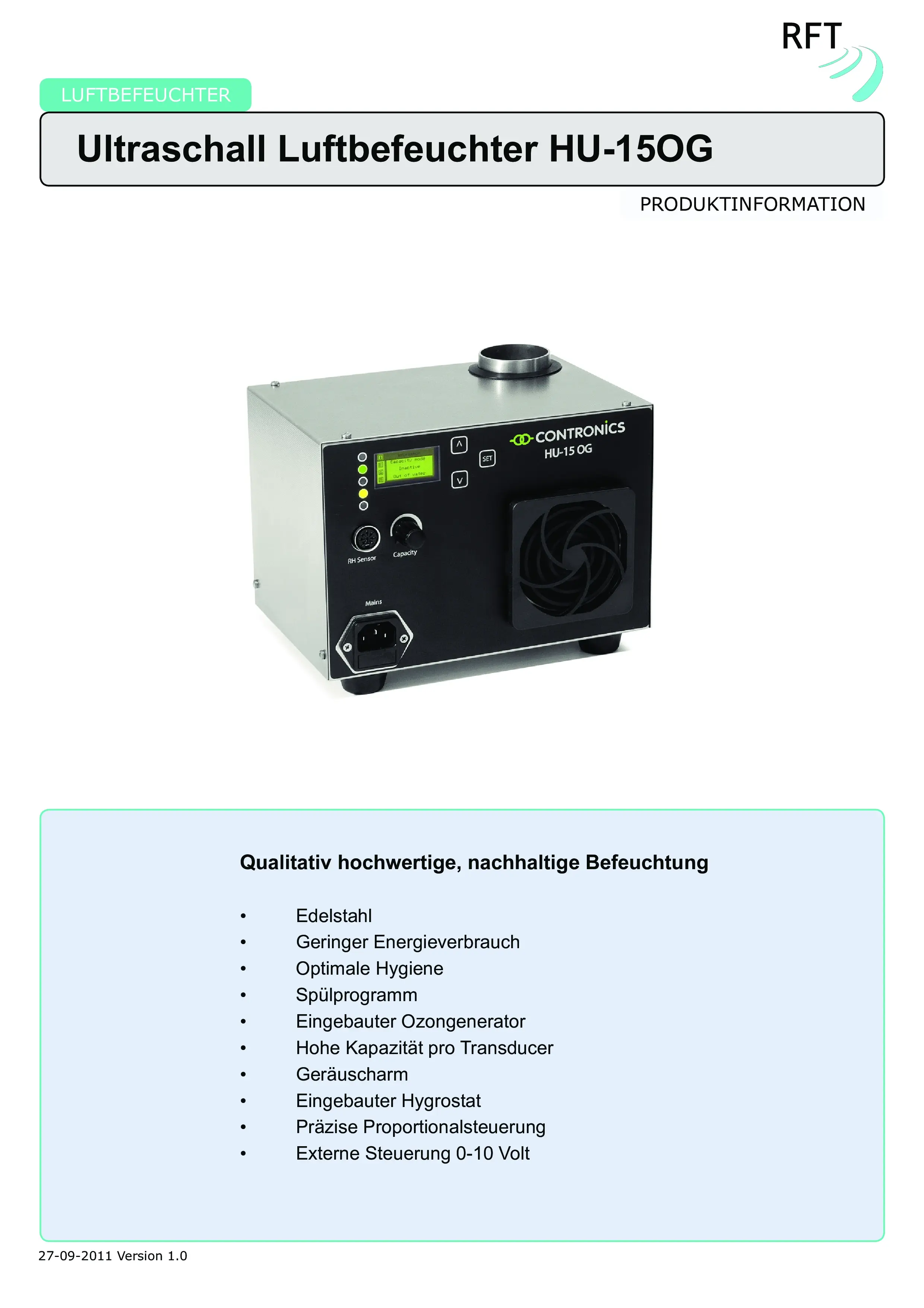 Optional kann ein Ozongenerator (OG) in den RFT Ultraschall-Luftbefeuchter integriert werden. Mit Hilfe des Ozons werden im Luftbefeuchter und den angeschlossenen Leitungen eventuell vorhandene Bakterien abgetötet.Ein Ozongenerator ist überall dort sinnvoll, wo vermehrt Bakterien auftreten können. Das kann bei Fisch und Fleisch der Fall sein oder dort, wo hohe Temperaturen herschen, wie zum Beispiel in Bäckereien.